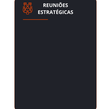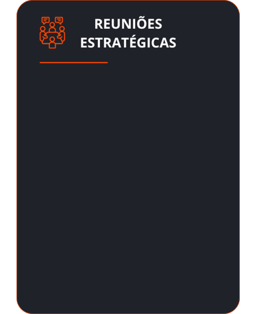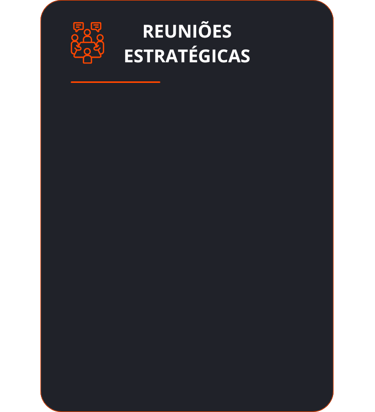 As reuniões estratégicas são o espaço para alinhar a visão da empresa, revisar resultados e garantir que todos estejam caminhando na mesma direção. É o momento de transformar informações em decisões inteligentes que movem o negócio.